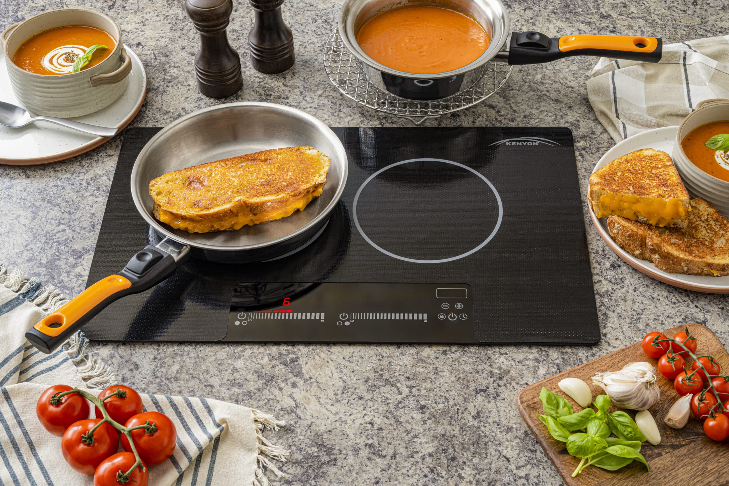 Available in 2-burner models with two voltage options, as well as compact 24” and standard 30” 4-burner sizes. By generating electromagnetic heat directly in the cookware, the induction surface stays cool to the touch, providing safer cooking while delivering faster heating, easier cleanup, and greater energy efficiency. This translates into both sustainability and utility savings. Patented cooking mat technology captures spills and boil-overs while protecting the ceramic surface from scratches. Combined with the highest-quality IGBT components and precision engineering, Kenyon induction cooktops deliver a premium cooking experience.