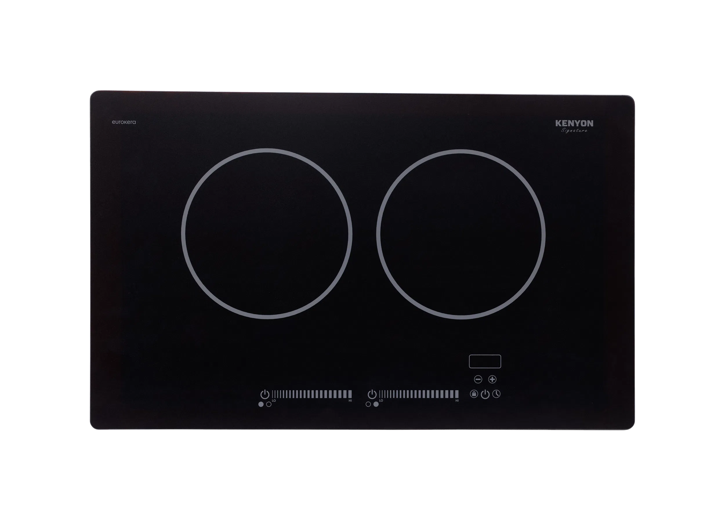 Introducing the Kenyon Signature® Induction 2 Burner Cooktop available in both 120V or 240V in a convenient landscape layout with two 6.25″ burners placed side by side, offering ample space for your culinary creations. The matte black glass-ceramic surface reduces glare, hides fingerprints, and delivers a refined look customers immediately notice. It feels premium, looks incredible, and stays clean with minimal effort. Kenyon is the only brand offering a matte finish in a 2-burner induction size, giving homeowners, boaters, and RV owners a design-forward option not found elsewhere. UL / C-UL approval provides added confidence for residential and mobile installations. The patented SilKEN® mat covers the cooking area providing surface protection and easy cleaning. Slide touch controls offer smooth heat adjustment with boost and simmer settings. The Bridge feature creates a larger cooking zone for griddles and oversized pans. Convenience and safety come from ADA-compliant access, a waterproof touch panel, control lock, automatic zone shutoff, fast heat dissipation, and a warming timer. The Signature® Induction Series brings elevated style and modern performance to any kitchen or galley.