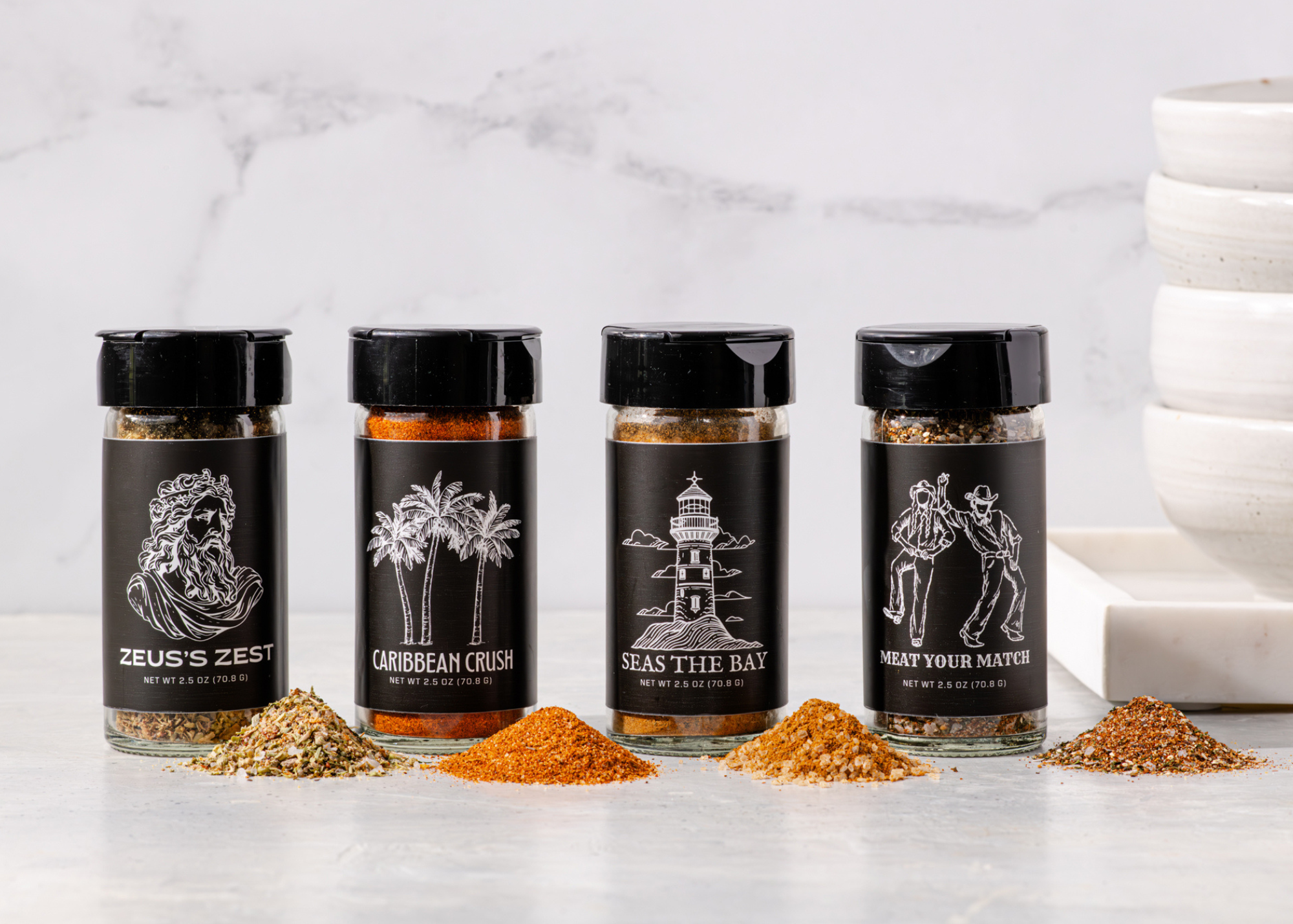 Take your grilling game to the next level with this powerhouse collection of bold, flavorful seasonings. Whether you’re craving smoky, fiery heat, a zesty Mediterranean twist, classic Chesapeake spice, or a tropical chili-lime kick, this pack has you covered. Perfect for meat, seafood, veggies, and even cocktails, these blends are crafted to bring out the best in every bite. Start up the grill and let the flavors do the talking!